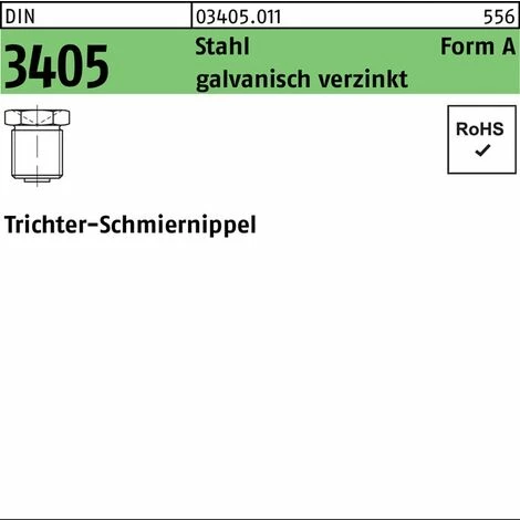 DIN 3405 Stahl Form A galvanisch verzinkt Trichter-Schmiernippel – Abmessung: AM 8 x 1 VE=S (100 Stück)