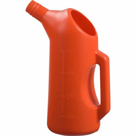 für Haushalt, Werkstatt und Hobby, aus öl- und säurebeständigem Polyethylen, Orange, lebensmittelecht, geprägte Skala, einfaches und sicheres Handling, standfest, kraftstoffbeständig.