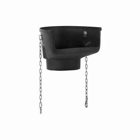 müba-Kunststofftrichter mit 2 verzinkten Ketten, aus Polyäthylen, kurze Ausführung, schwarz | Eigenschaften: Gewicht: 6 kg, Länge: 550, Durchmesser unten: 0,4 m, Durchmesser oben: 0,5 m, Material: Polypropylen, BG Zeichen: Ja, Maße Einfüllöffnung: 0,25×0,65×0,7, Breite: 650, Höhe: 250, Tiefe: 700