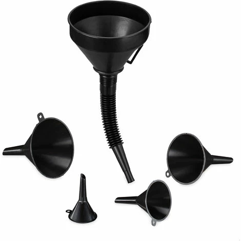 Für den Ölwechsel ist das Trichterset ideal. Öl und Kühlwasser können Sie mit dem Kfz-Trichter ganz entspannt einfüllen. Das Sieb hält schädliche Partikel ab und lässt sich bei Bedarf entnehmen. Der Schlauch ist beweglich und abnehmbar. Aber nicht nur in der Garage ist der Trichtersatz praktisch. Auch im Haushalt sind die Universaltrichter auf vielfältige Weise nützlich. Sie lassen sich platzsparend ineinanderstapeln, können dank der Ösen aber auch aufgehängt werden.