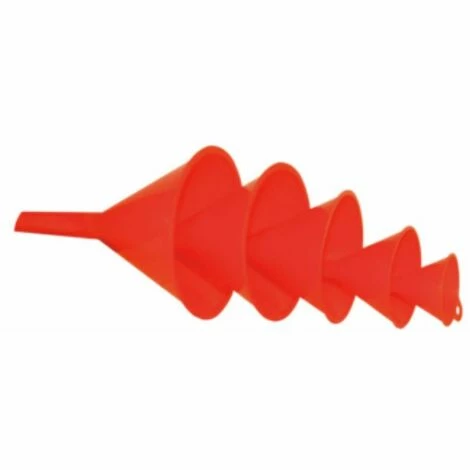Trichtersatz 5-teilig • Ausführung: Aus Polyethylen (PE) – lebensmittelbeständig.Öl- und Säurefest, Benzin-, und BremsflüssigkeitsbeständigTemperaturbeständig : -20°C bis + 80°CEnthaltene Durchmesser : 50,75,100,120,150 mm