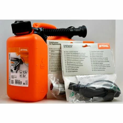 Produkt info Stihl Kombi Kanister orange, Standard 1,5 und 3 Liter 00008810124Trichterset zum Einfüllen von Öl und Benzin, komplett mit Benzinkanister und ÖlOriginal Stihl Einfüllsystem für Benzin und Kettenöl<br />Mit UN-Zulassung, orange. Doppelbehälter für 3 l Kraftstoff und 1,5 l Sägekettenhaftöl. Inklusive Auslaufrohre. Auch bei diesem Kanister können STIHL Einfüllsysteme für Kraftstoff und Sägekettenhaftöl verwendet werden.Fassungsvermögen des Tanks: 1,5 l + 3 lOriginal Stihl Einfüllsystem für Benzin und Kettenöl<br />Verwendbar für alle Tanköffnungen Ø 23,5 mm<br />Zum einfachen Betanken von STIHL Motorgeräten<br />Für alle STIHL Kombikanister, Benzinkanister und MotoMix-5-l-Kanister<br />Für große und kleine Kombikanister, d.h. 5L / 3L, und 3L / 1,5L.<br />Für STIHL Kombi-Kanister, sowie STIHL Benzinkanister (Mehrweggebinde). Damit beim Betanken eines <br />Motorgeräts k…