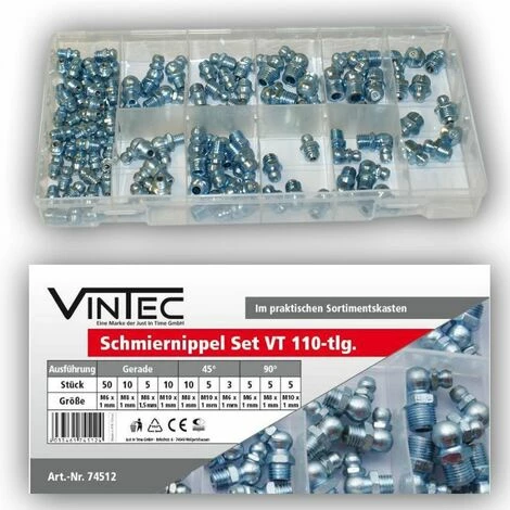 Vintec Schmiernippel 110-tlg Sortiment M6/M8/M10 Gewinde Setbox Abschmiernippel