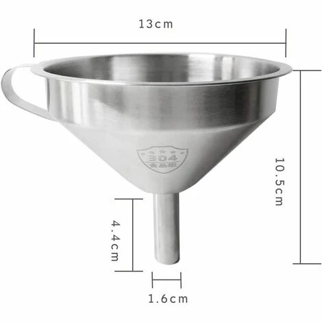 【Hochwertiger Edelstahl】 Der Kochtrichter ist aus hochwertigem Edelstahl gefertigt, innen und außen poliert, glatte Oberfläche, langlebig und leicht zu reinigen. Hergestellt aus Materialien in Lebensmittelqualität. Mit einem Durchmesser von 13 cm bietet er ausreichend Platz zum Ausgießen von Flüssigkeiten aller Art.