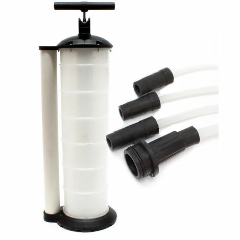 Mit dieser tragbaren, manuellen Vakuumpumpe wird der Ölwechsel zu einer schnellen und sauberen Angelegenheit. Aber auch andere Flüssigkeiten wie Wasser oder Bremsflüssigkeit lassen sich problemlos fördern. Die Absaugpumpe arbeitet nach dem Vakuumprinzip: Mit einer Handpumpe wird in dem zu befüllenden Behälter ein Unterdruck erzeugt, die Flüssigkeit fließt dann über einen Schlauch ab ohne dass die Pumpe verschmutzt wird. Nach dem Vorgang müssen anschließend nur Schlauch und Auffangbehälter gereinigt werden.